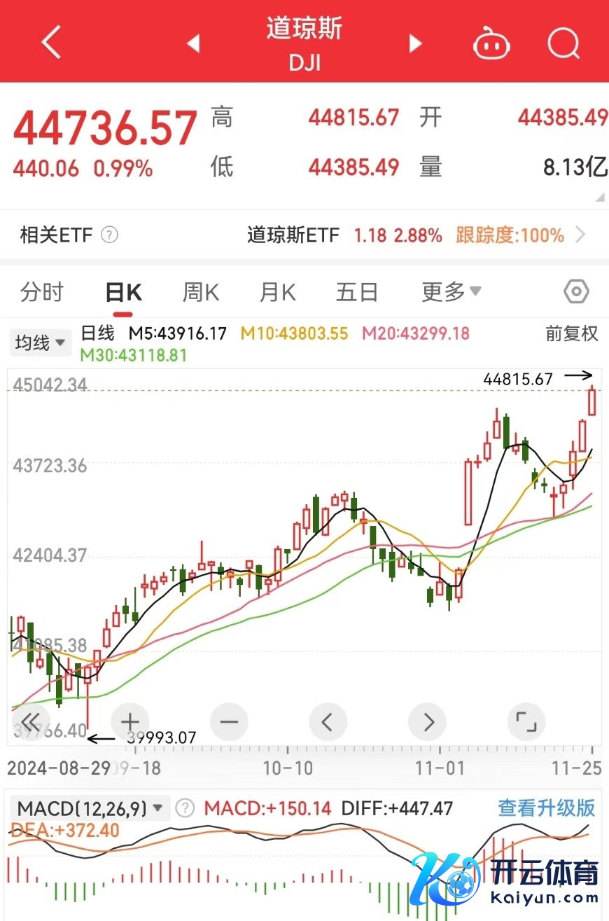 当地时辰11月25日,好意思股三大指数集体收高,谈指高潮440.06点,涨幅0.99%,再编削高;纳指涨0.27%,标普500指数涨0.30%。