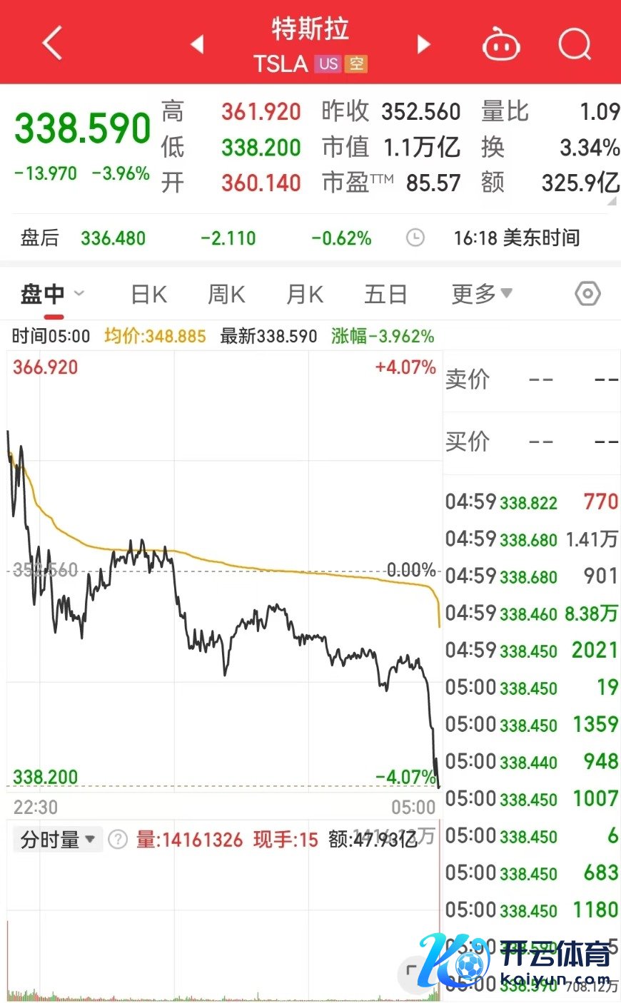 特斯拉报338.59好意思元,跌3.96%,市值1.1万亿好意思元。其市值整宿挥发448亿好意思元(约合东谈主民币3200亿元)。