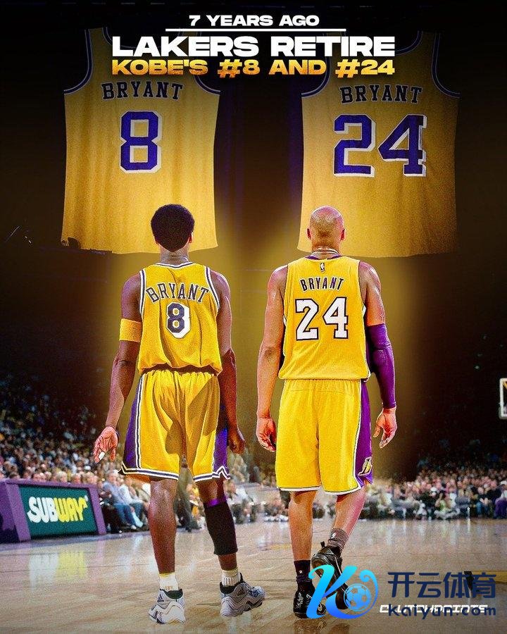 直播吧12月19日讯 7年前的今天开云体育,湖东说念主在主场退役了科比的8号和24号球衣。