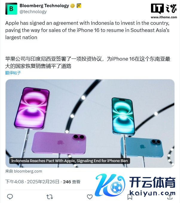 彭博社报谈称开yun体育网,印尼工业部长阿古斯当天布告与苹果签署了一项投资条约,为 iPhone 16 在当地收复销售铺平了谈路。