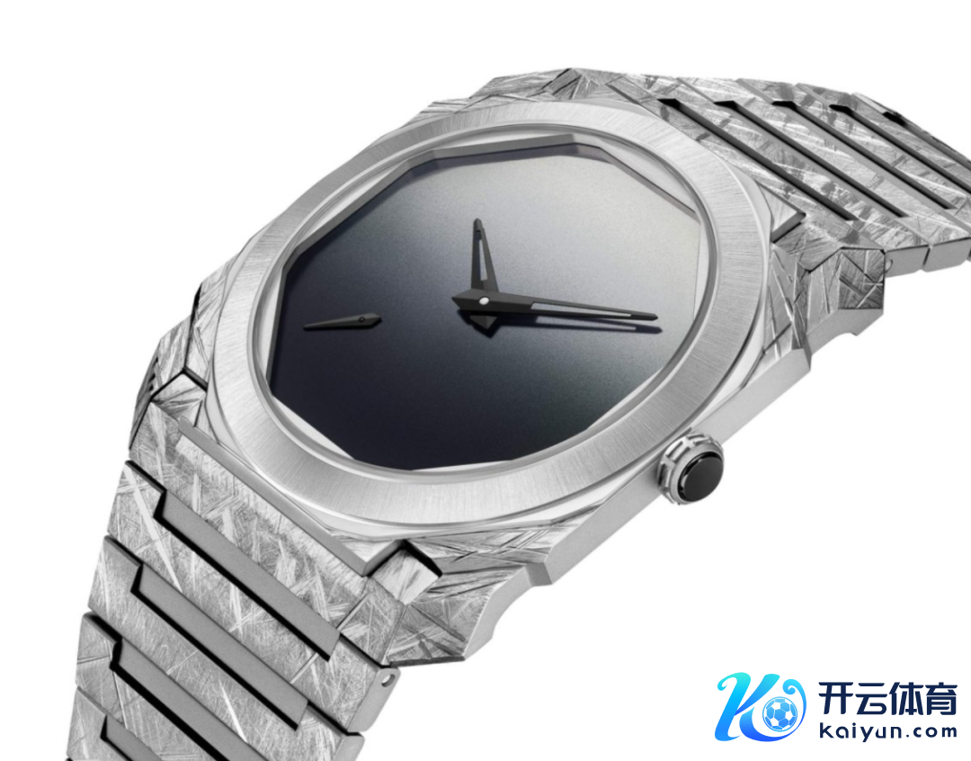 此款很是款手表的打造,并非仅是将一枚饰有紧密玄色指针的镜面表盘置于表壳之中,而是巧妙借助Octo Finissimo系列标识性的表壳结构,进一步提高表盘的进展力,营造出历害的视觉成果。